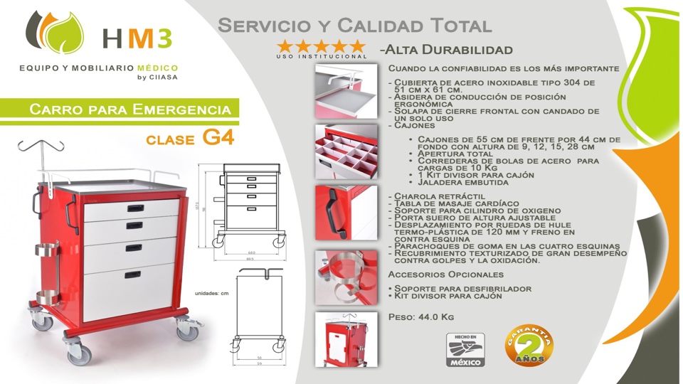 – Desplazamiento por ruedas de hule termo-plástica de 120 mm y freno en contra esquina.