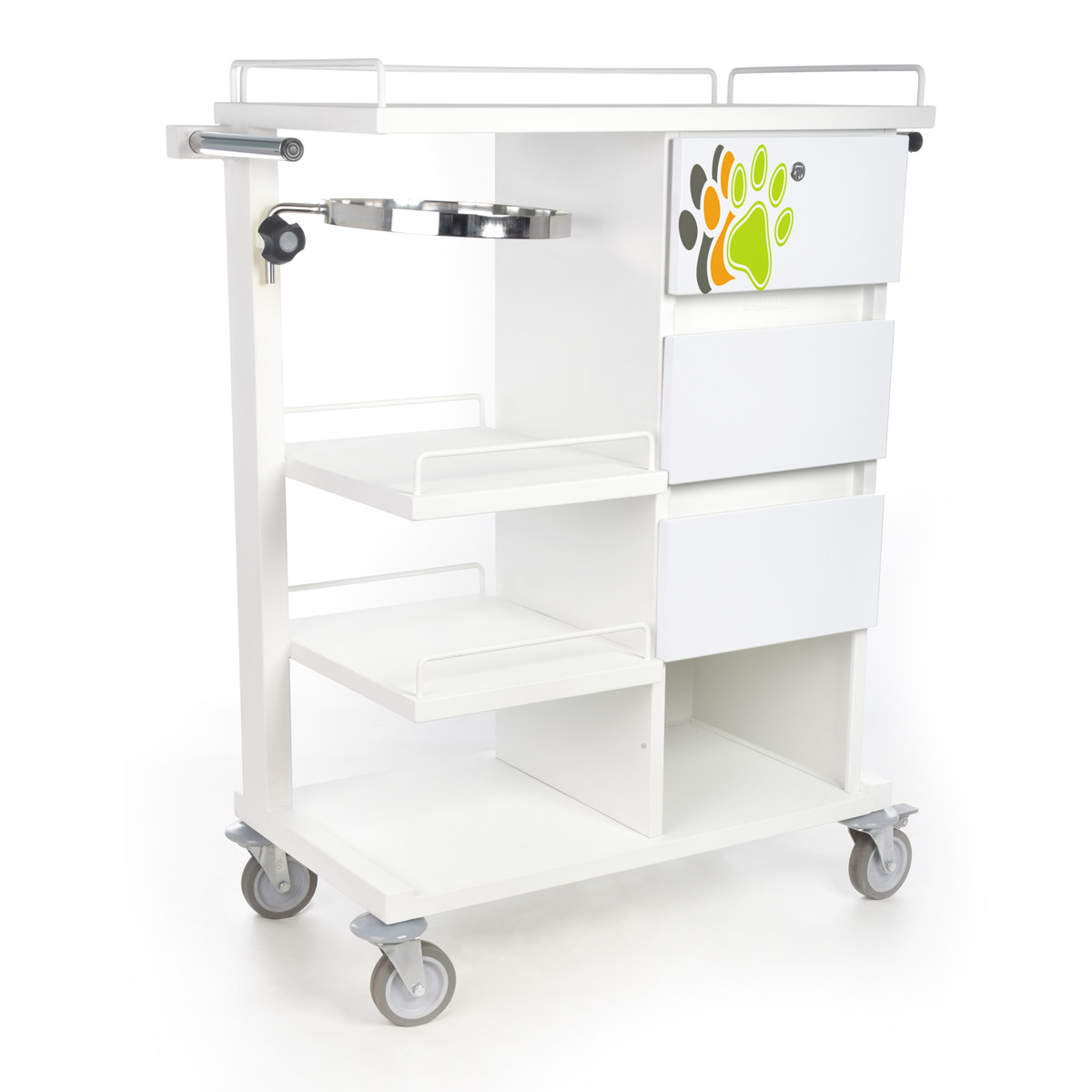– Desplazamiento por ruedas de hule termo-plástica de ø 10 cm y freno en contra esquina.